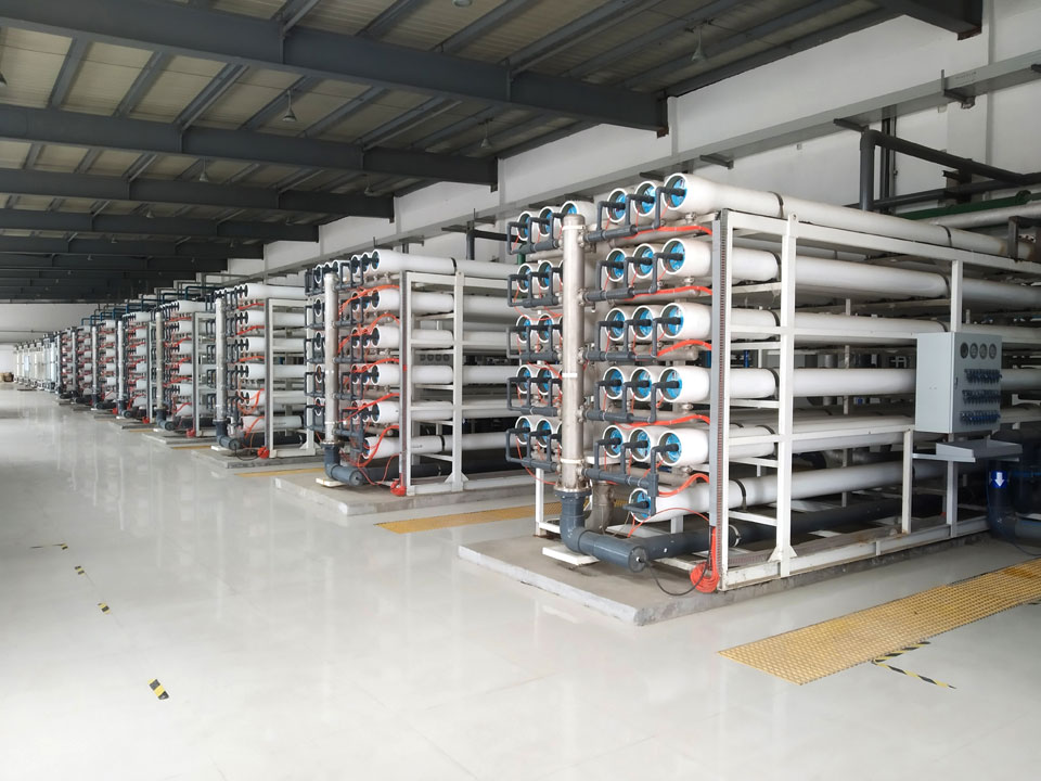 反滲透在脫鹽濃縮方面效果很好,最適宜稀溶液的濃縮,對濃度高的溶液處理受滲透壓和膜本身耐壓的限制,水回收率低,而納濾膜具有半脫鹽性能,可以讓單價離子部分通過而截流二價以上的離子,雖然納濾去除離子的能力不及反滲透,但是與反滲透相比,納濾具有操作壓力低,出水效率高、濃縮水排放少等優(yōu)點。如果把反滲透脫水和納濾結(jié)合起來,各自發(fā)揮優(yōu)勢,既減少了工程造價,回收率也比反滲透高,又減少了濃水的排放總量。